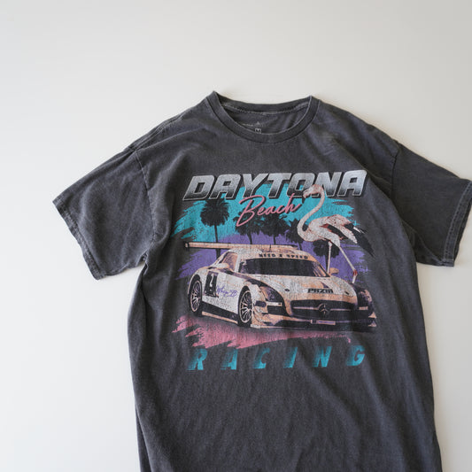 Thrifted – Polera Washed Daytona Racing Gris Vintage Talla M (CL 38–40) | Largo 71 cm | Ancho 54 cm