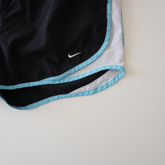 Thrifted – Short Nike Negro Running Mujer Talla M (CL 38–40) | Cintura 40–44 cm | Caderas 52 cm | Largo 30 cm
