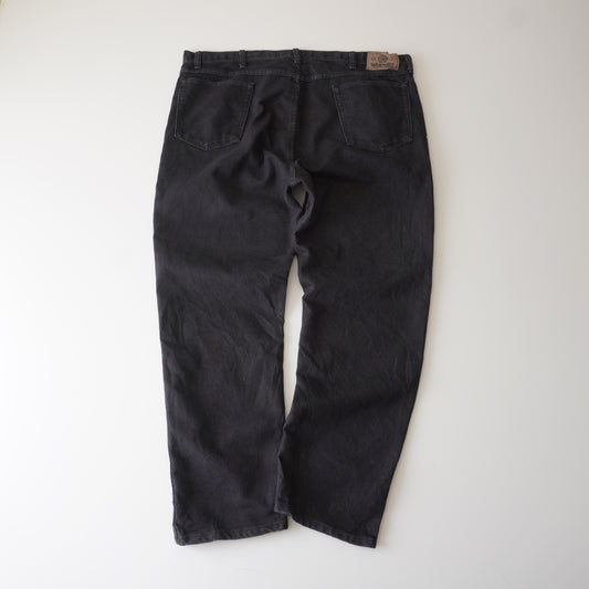 Thrifted – Jean Wrangler Negro Talla 44x30 USA (CL 56 aprox.) | Cintura 56 cm | Largo 113 cm | Talón 23 cm