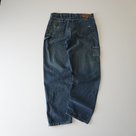 Thrifted – Jean Carpenter Wrangler Rugged Wear Talla 36x32 USA | Cintura 48 cm | Largo 112 cm | Talón 21 cm