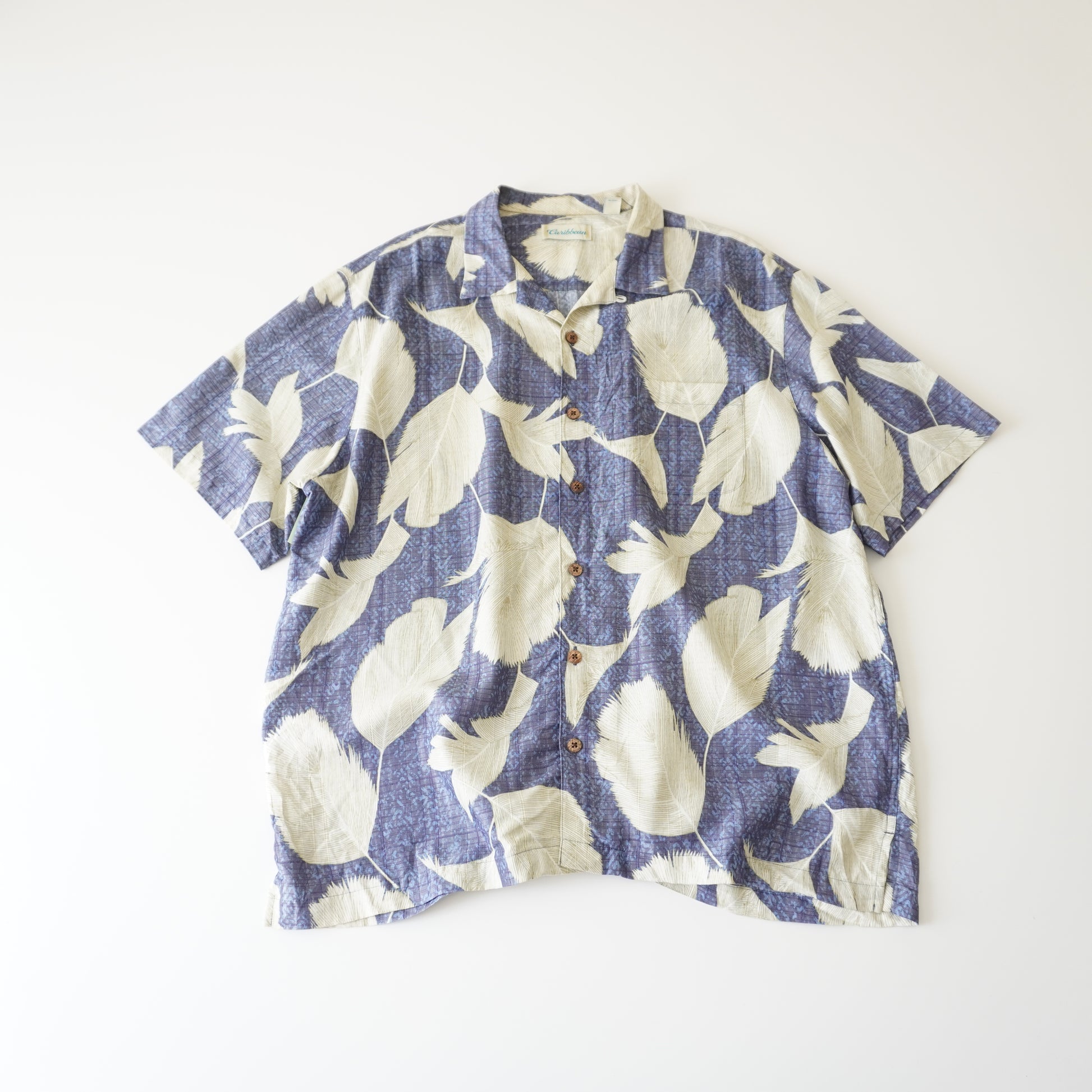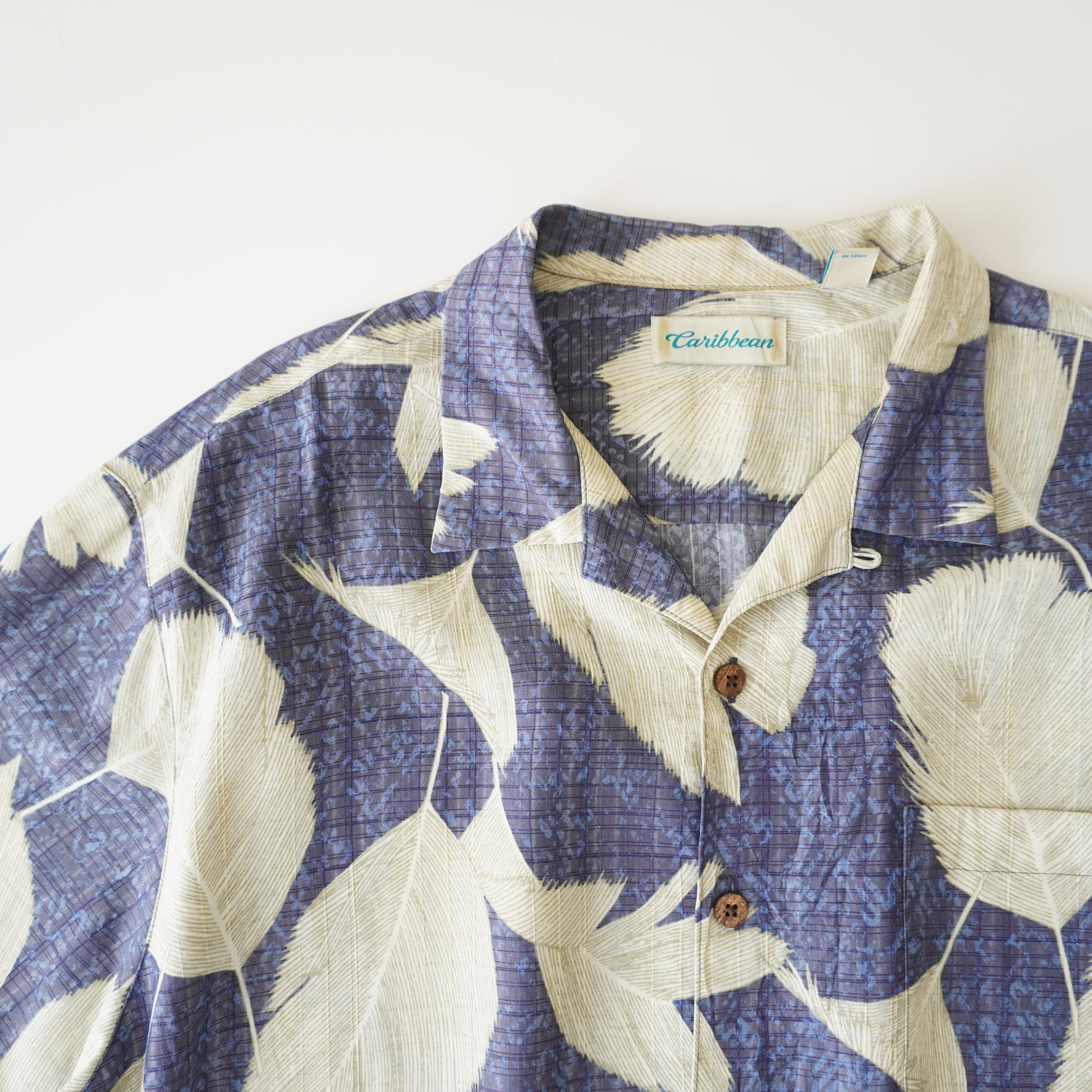 Thrifted - Camisa Caribbean Azul con flores blancas hawaianas / Talla XL 74 LARGOX 68 ANCHO