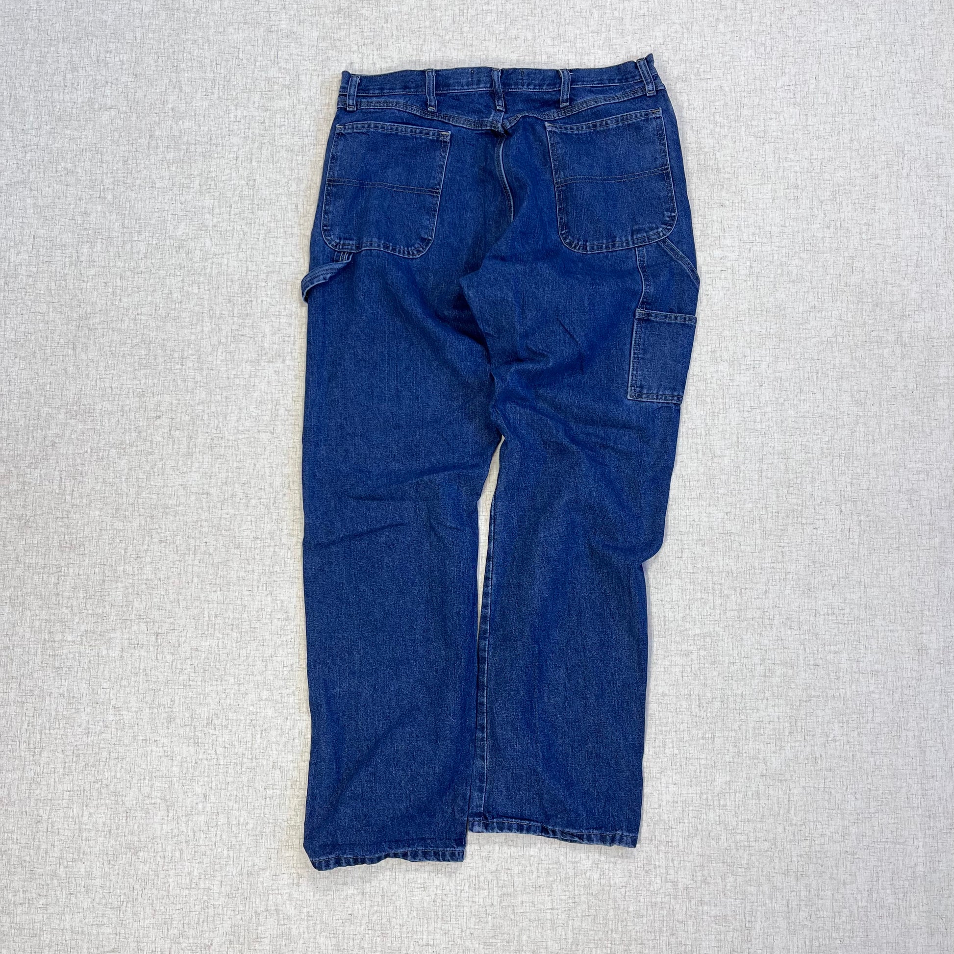 Thrifted – Jean Carpenter Denim Wrangler Talla 36x34 USA (CL 50–52) | Cintura 46 cm | Largo 114 cm | Talón 23 cm