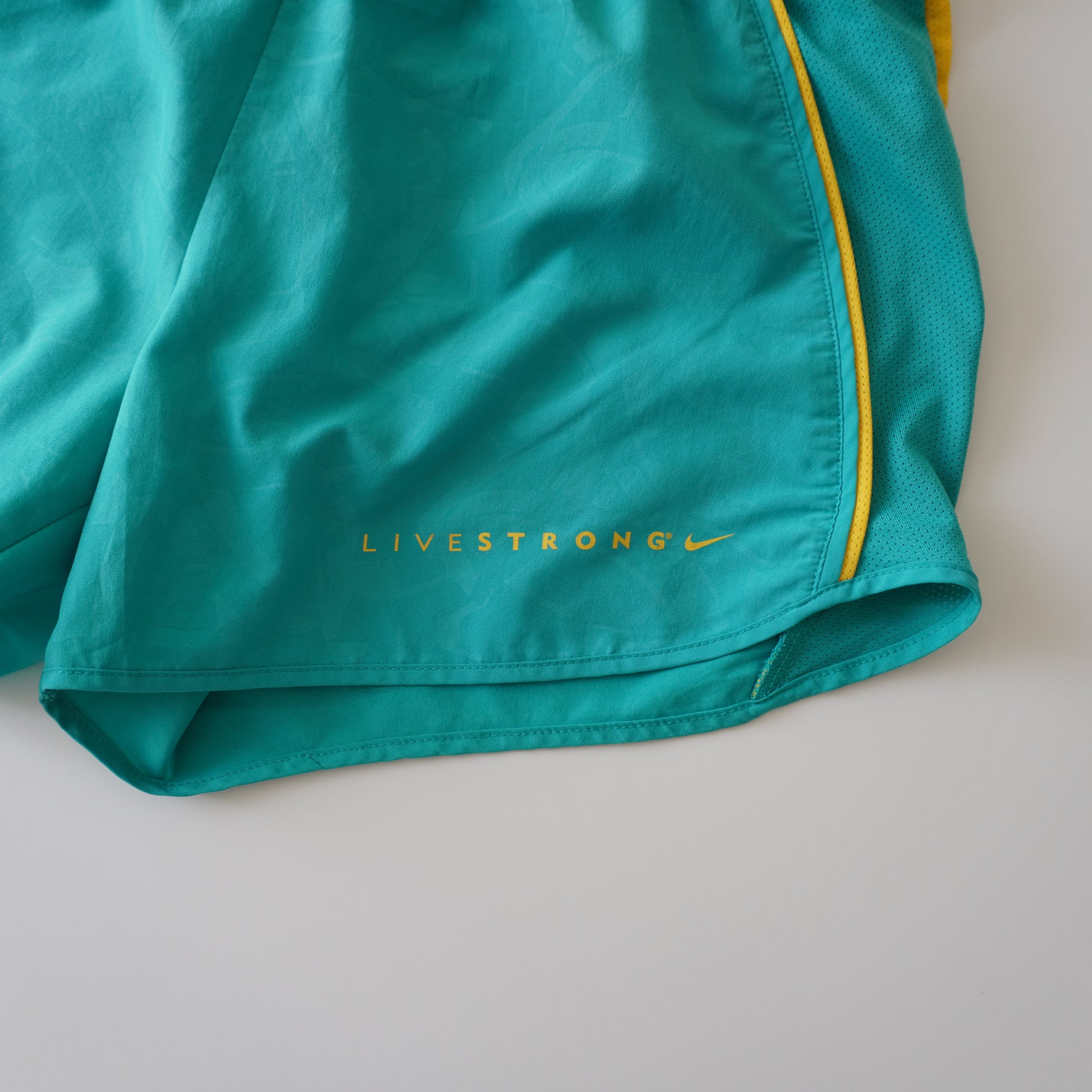Thrifted – Short Nike Verde LIVESTRONG Running Mujer Talla M (CL 38–40) | Cintura 43–49 cm | Caderas 48 cm | Largo 30 cm