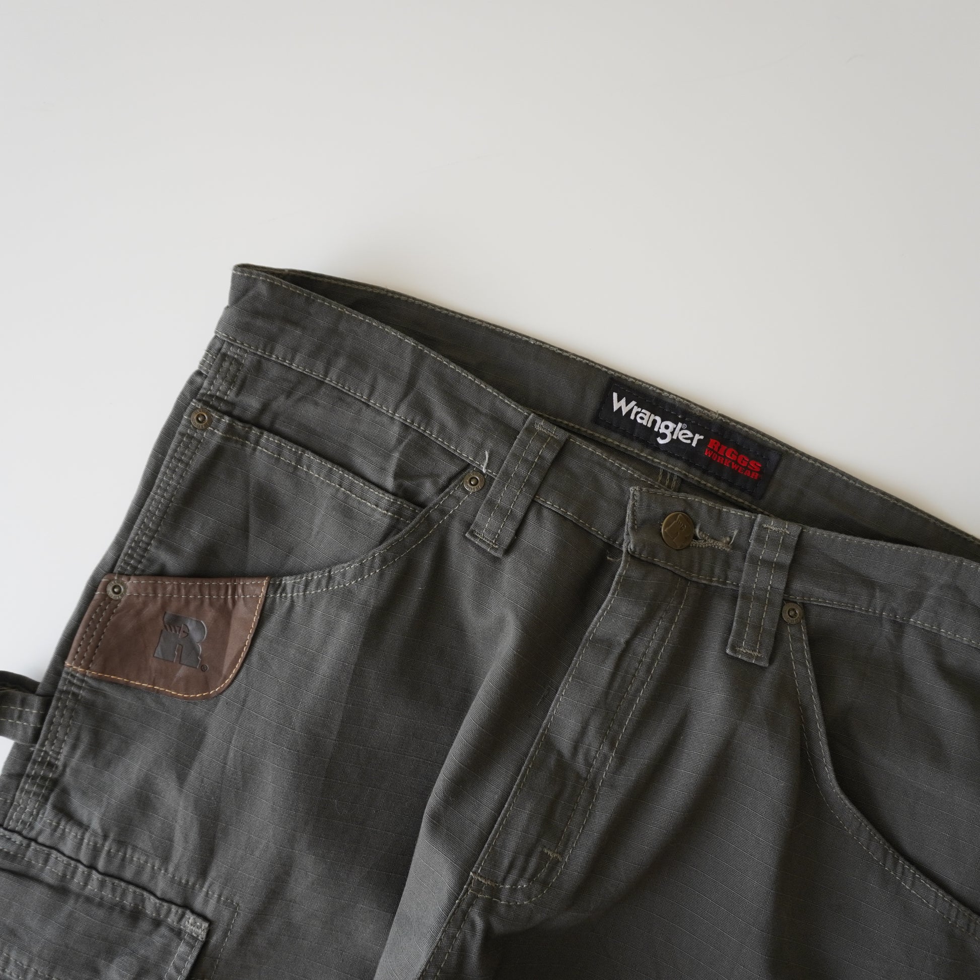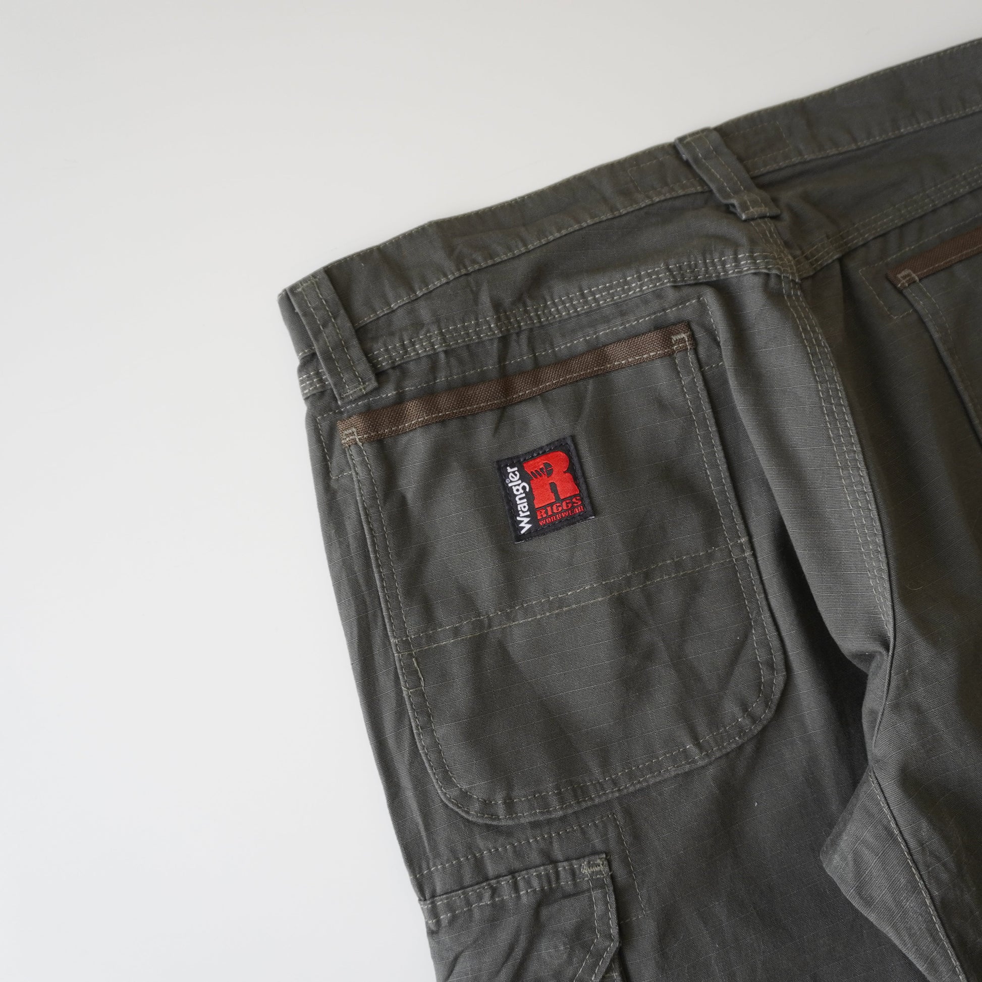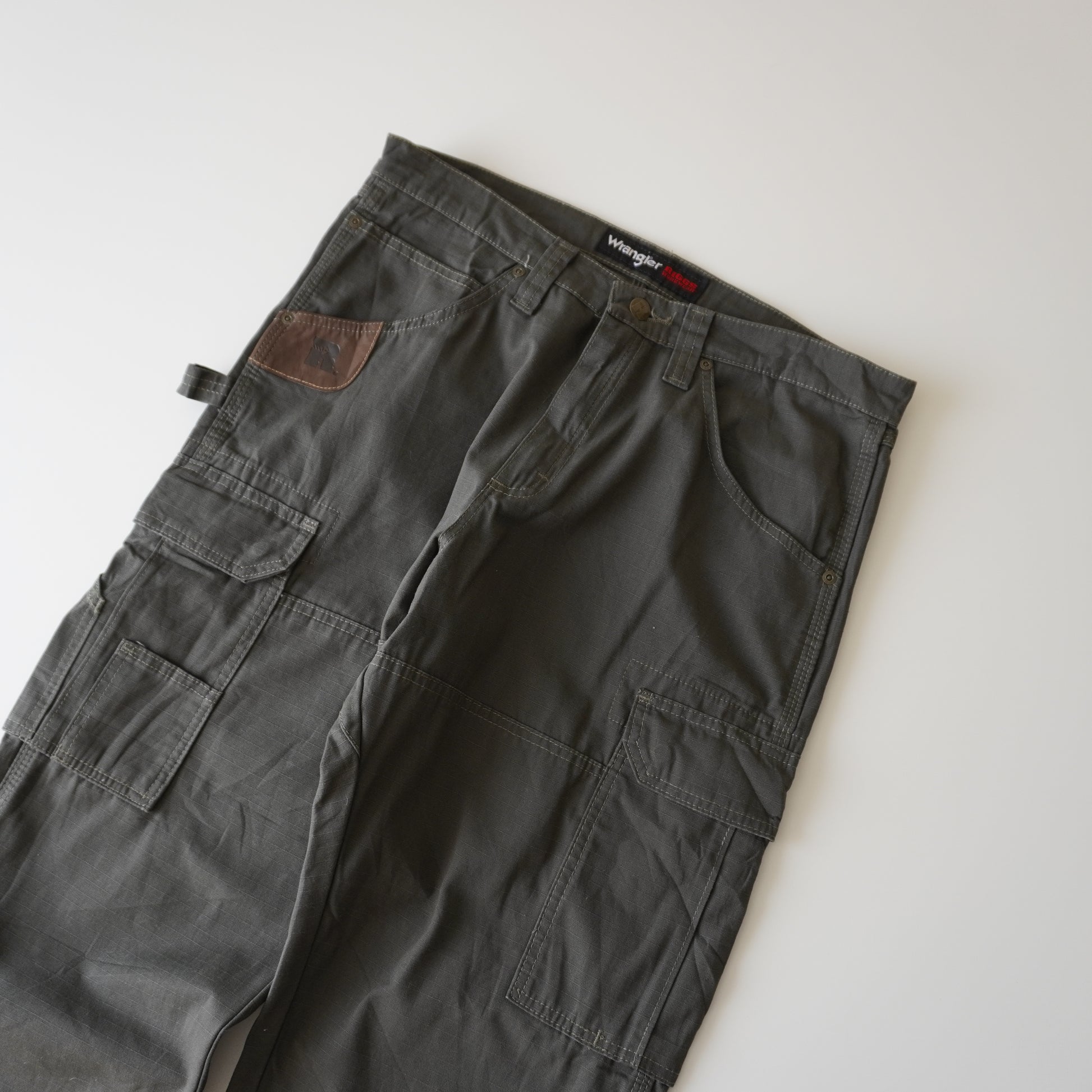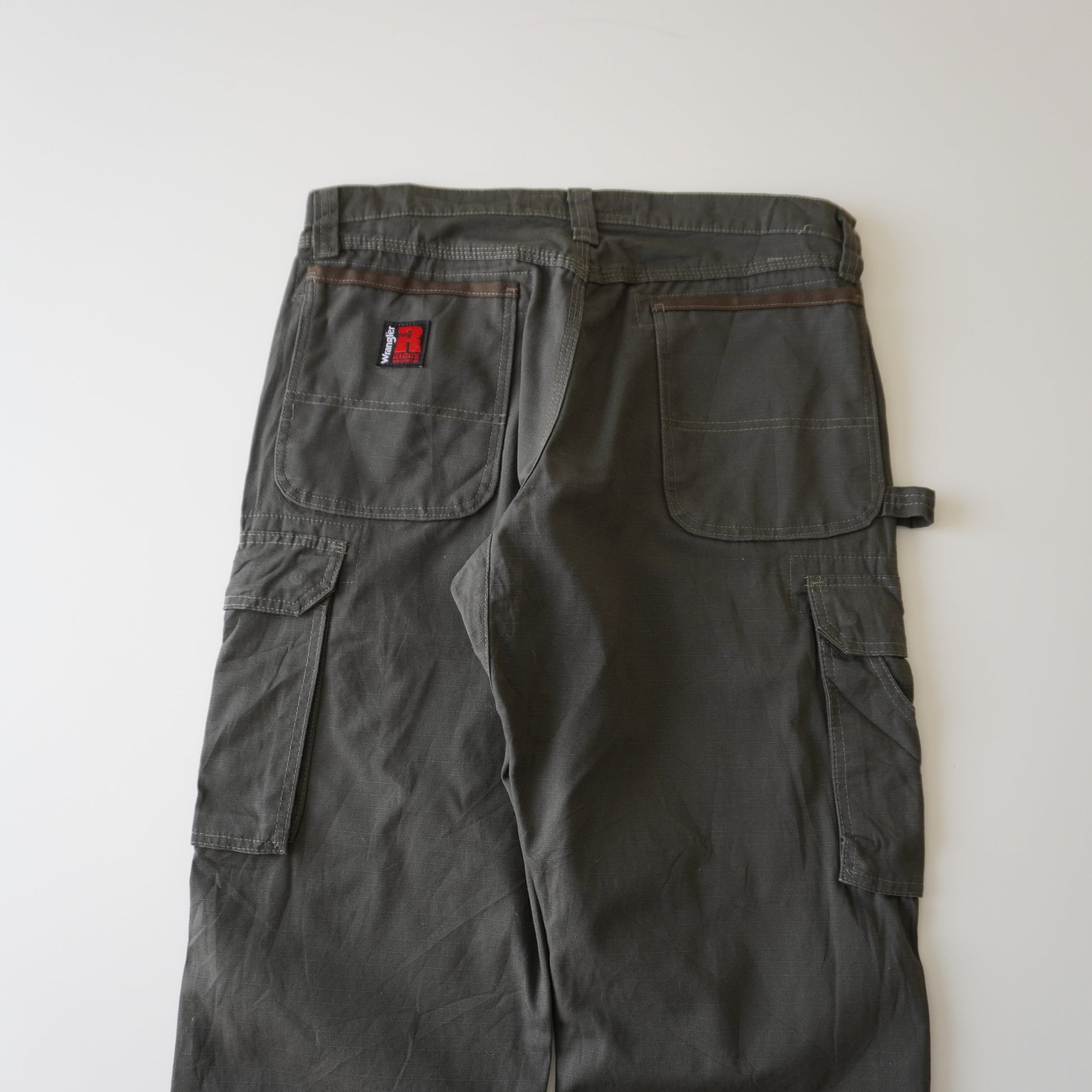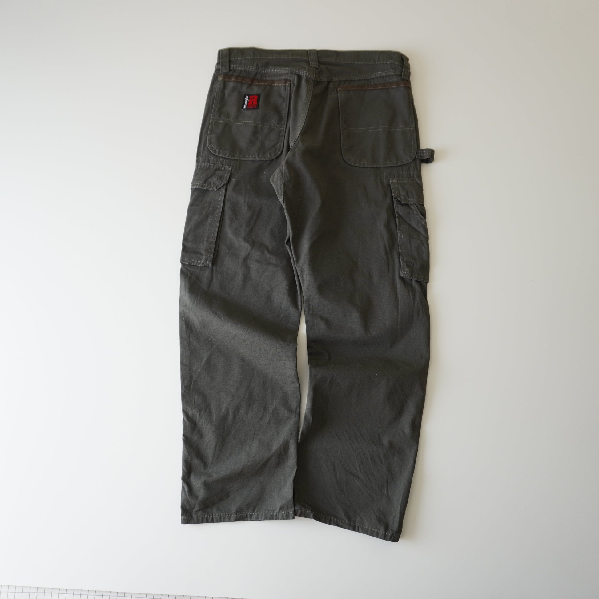 Thrifted – Pantalón Cargo Verde Riggs by Wrangler Talla 33x30 USA | Cintura 43 cm | Largo 103 cm | Talón 23 cm