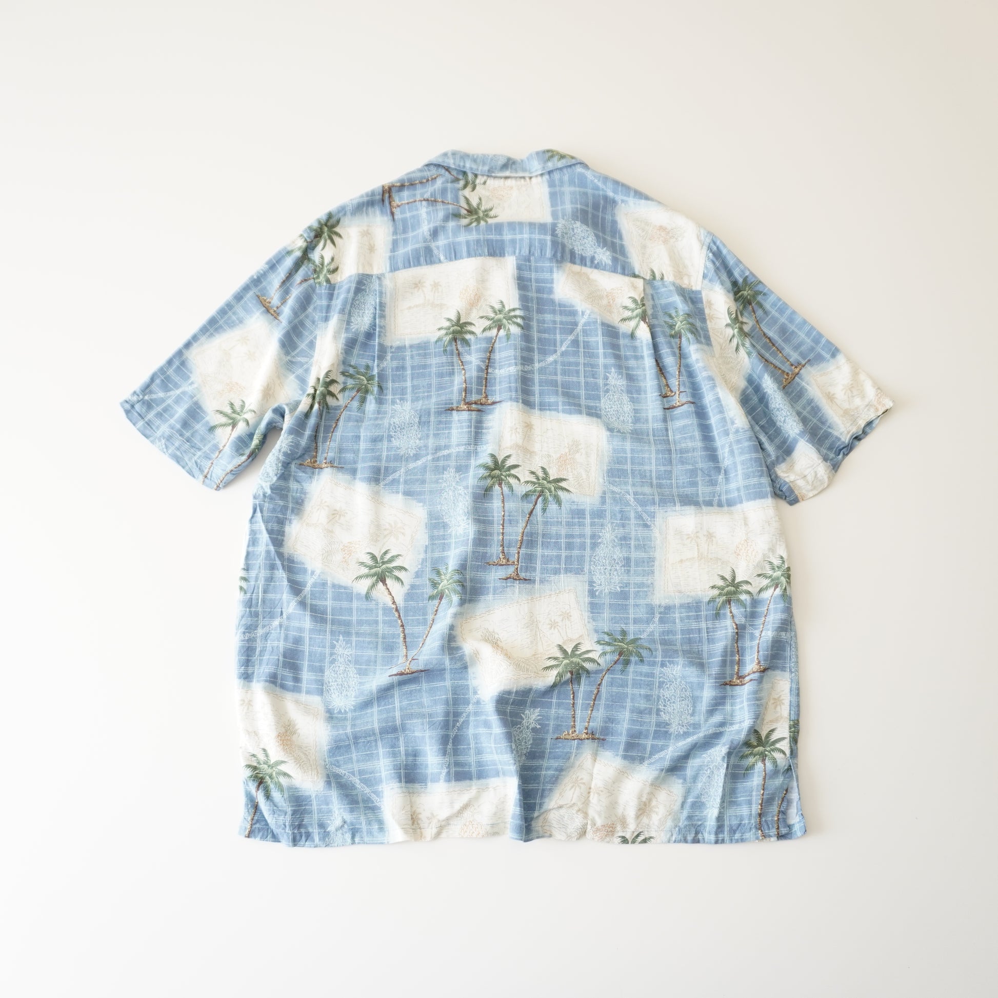 Thrifted - Camisa BATIC BAY Celeste con blanco / Talla L, 74 LARGO X 59 ANCHO