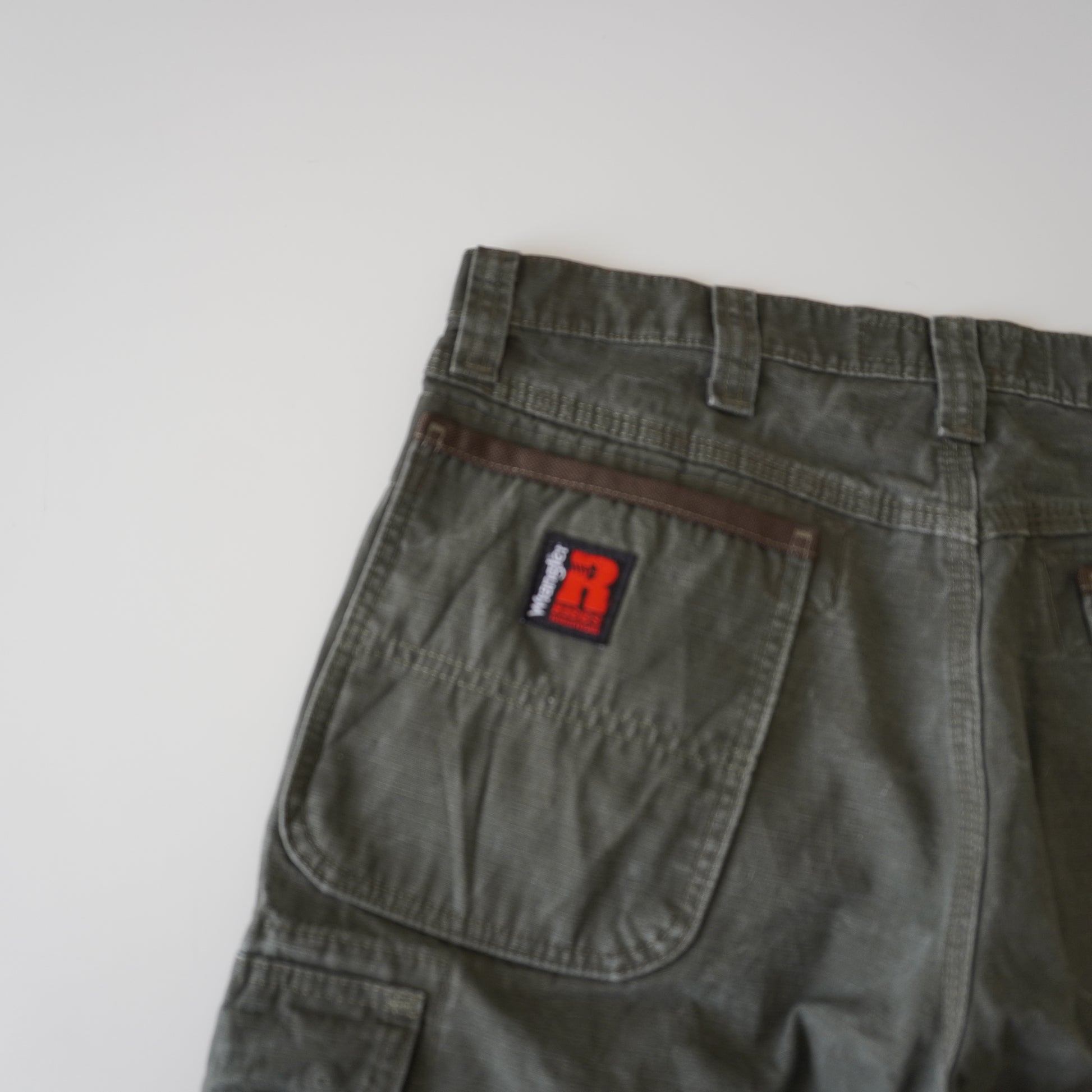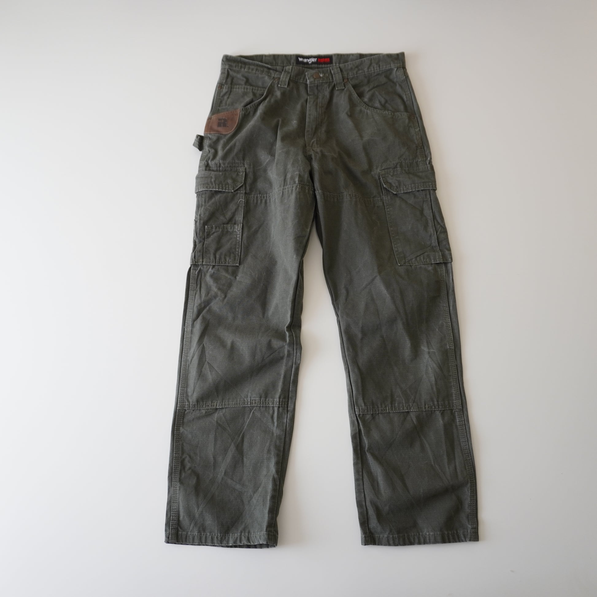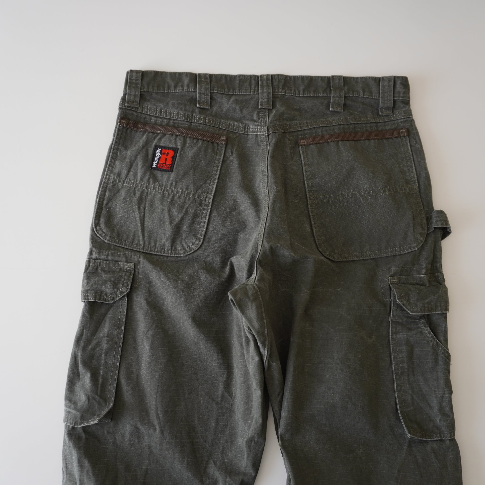 Thrifted – Cargo Carpenter Verde Oliva Wrangler Riggs Workwear Talla 34x32 USA (CL 44) | Cintura 45 cm | Largo 109 cm | Talón 23 cm