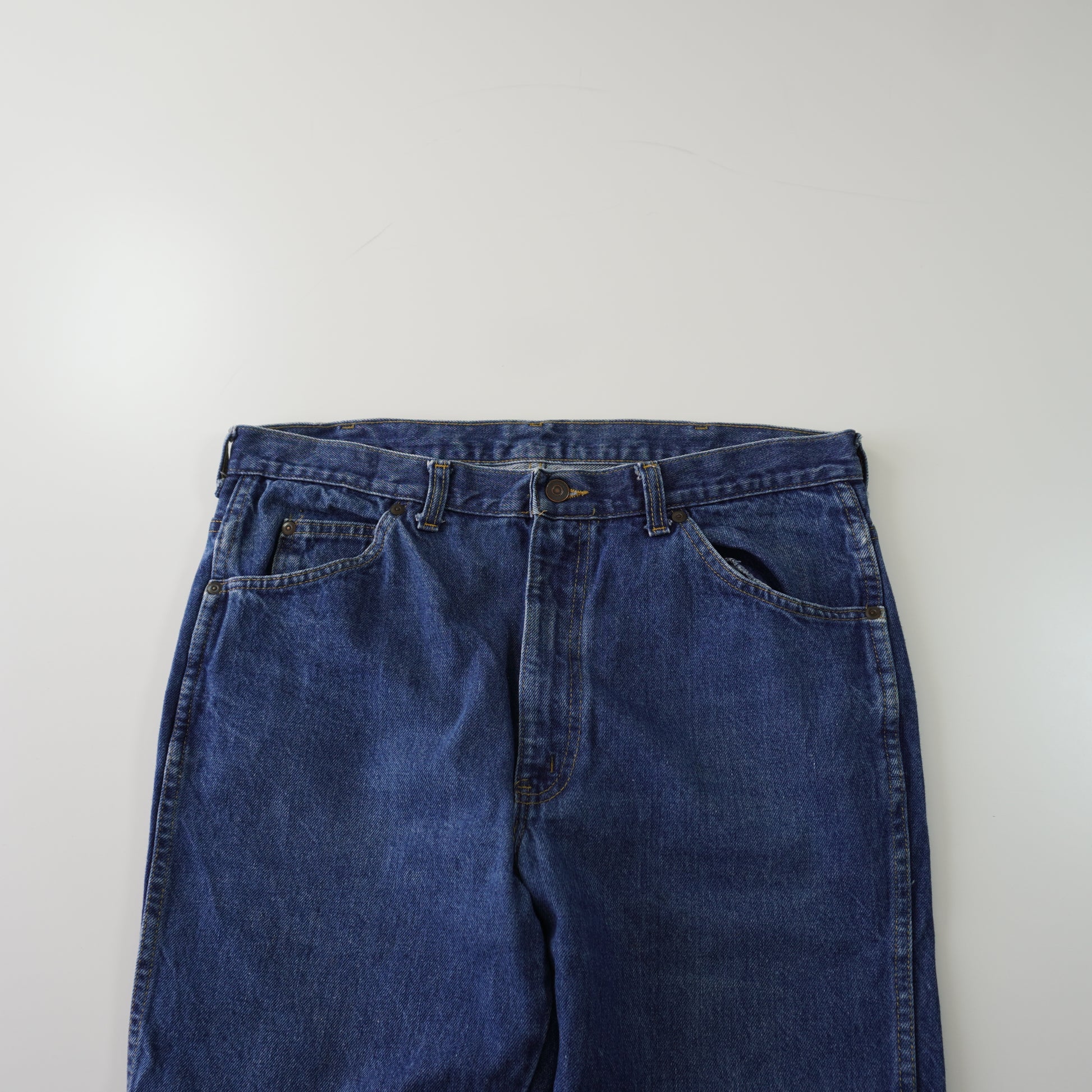 Este jean americano thrifted, sin marca visible y con botón color cobre, es una prenda auténtica y minimalista, ideal para quienes valoran el estilo vintage sin etiquetas. Con cintura de 45 cm, largo de 103 cm y talón de 23 cm, corresponde aproximadamente a una talla CL 44, ofreciendo un calce recto y cómodo.