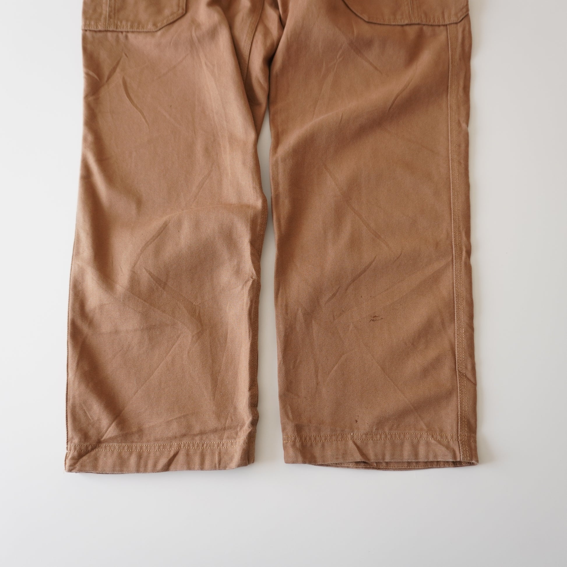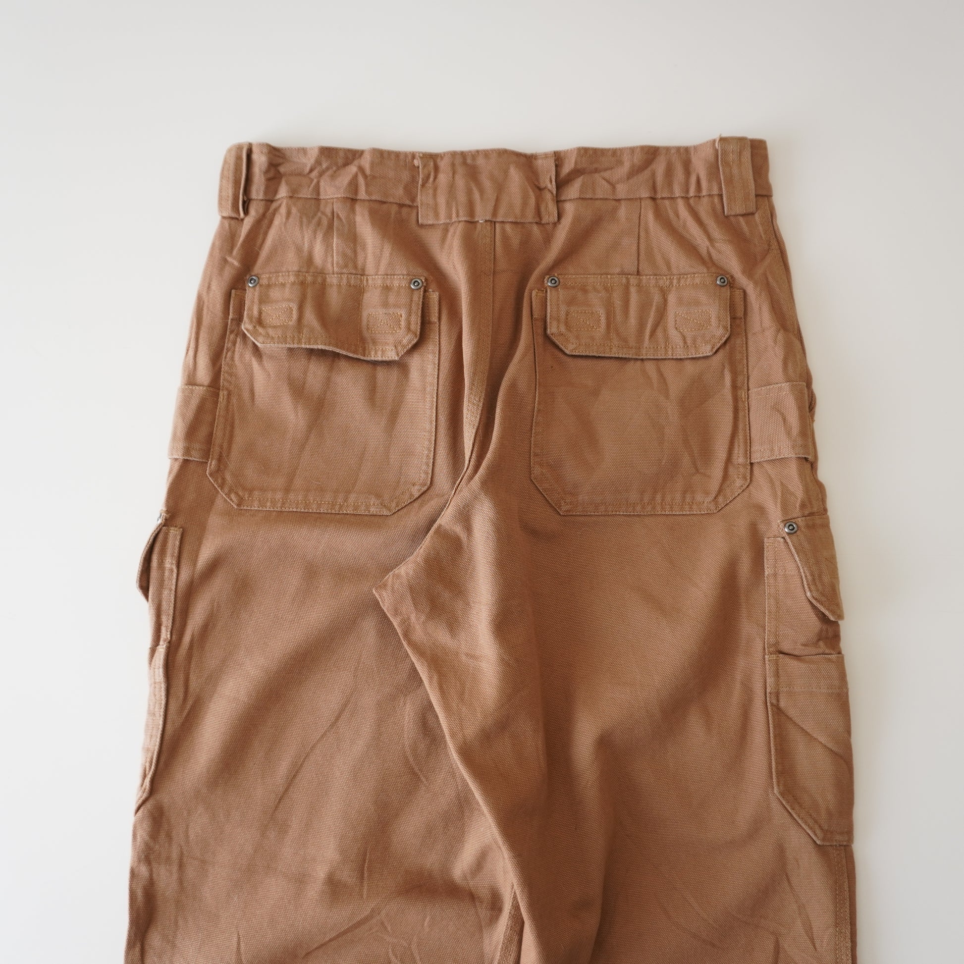 Confeccionado en denim café grueso y robusto, cuenta con bolsillos cargo amplios, costuras reforzadas y presillas sólidas, fiel al diseño característico de la marca Duluth Trading, reconocida por su ropa de trabajo funcional y de alto rendimiento. Una pieza thrifted que combina estilo vintage, confort y durabilidad real.