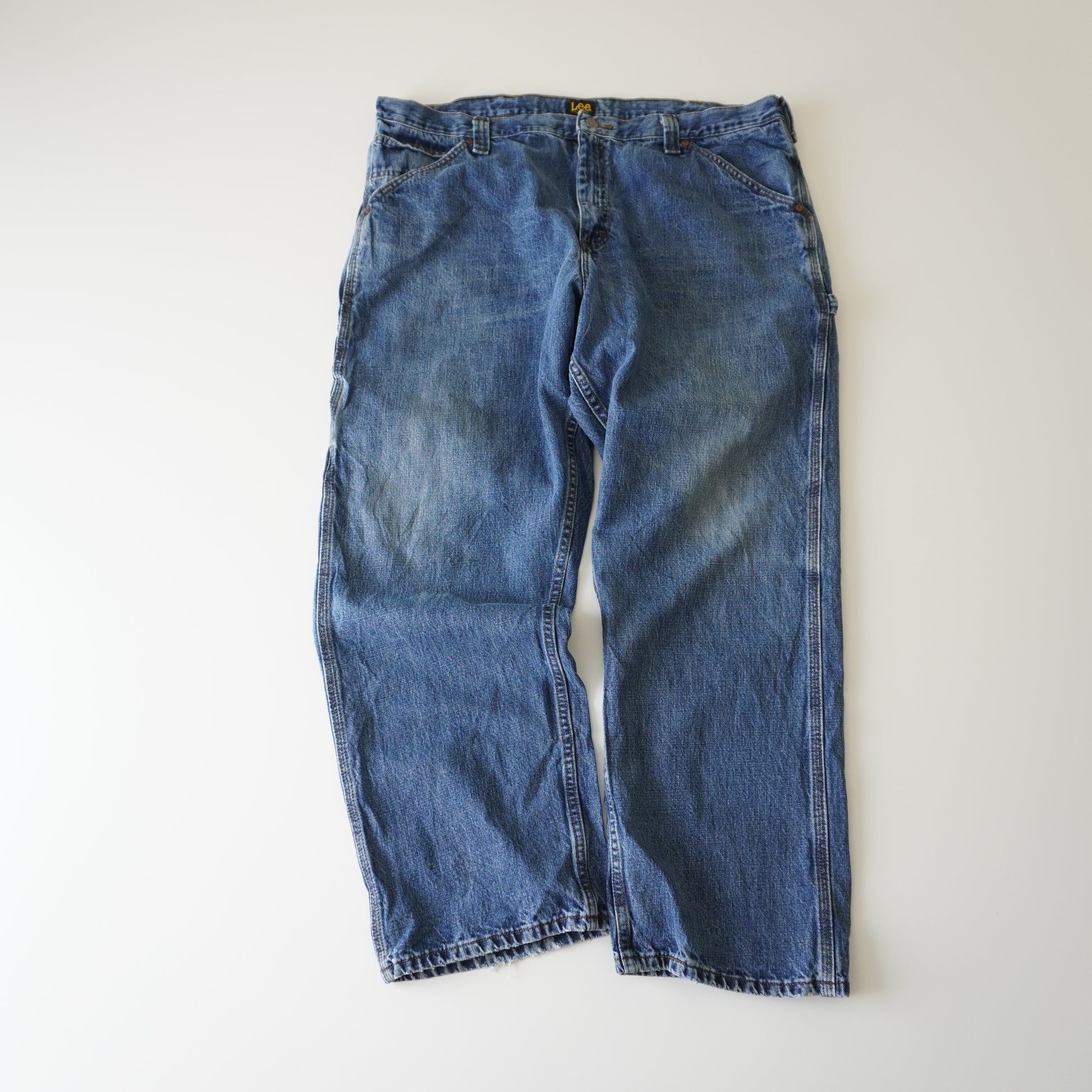 Este jean carpenter Lee thrifted, en talla 42x30 USA, es una pieza icónica del estilo workwear vintage, conocida por su durabilidad, comodidad y autenticidad. Con cintura de 55 cm, largo de 106 cm y talón de 26 cm, ofrece un calce amplio y relajado, ideal para un look urbano, utilitario o clásico de trabajo.
