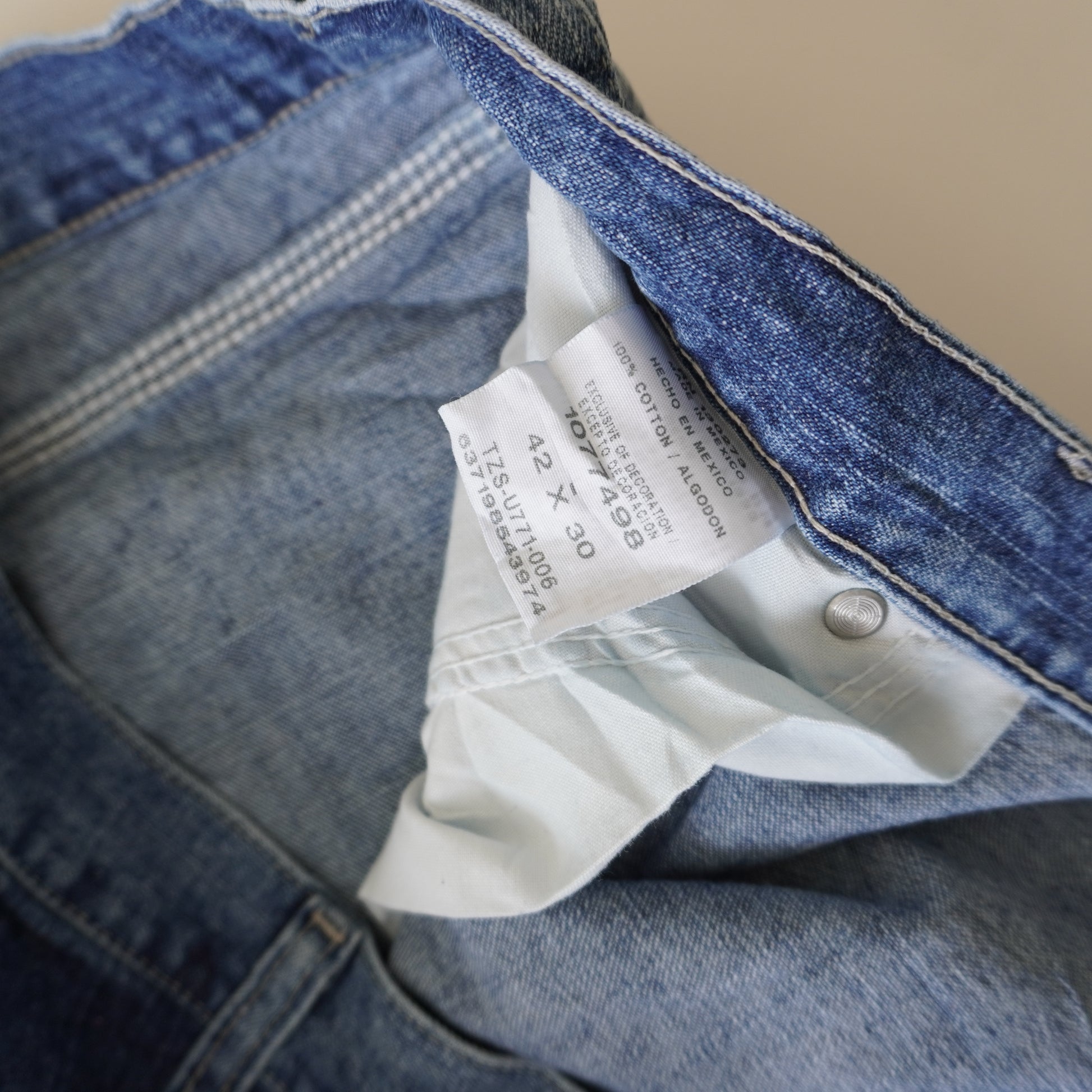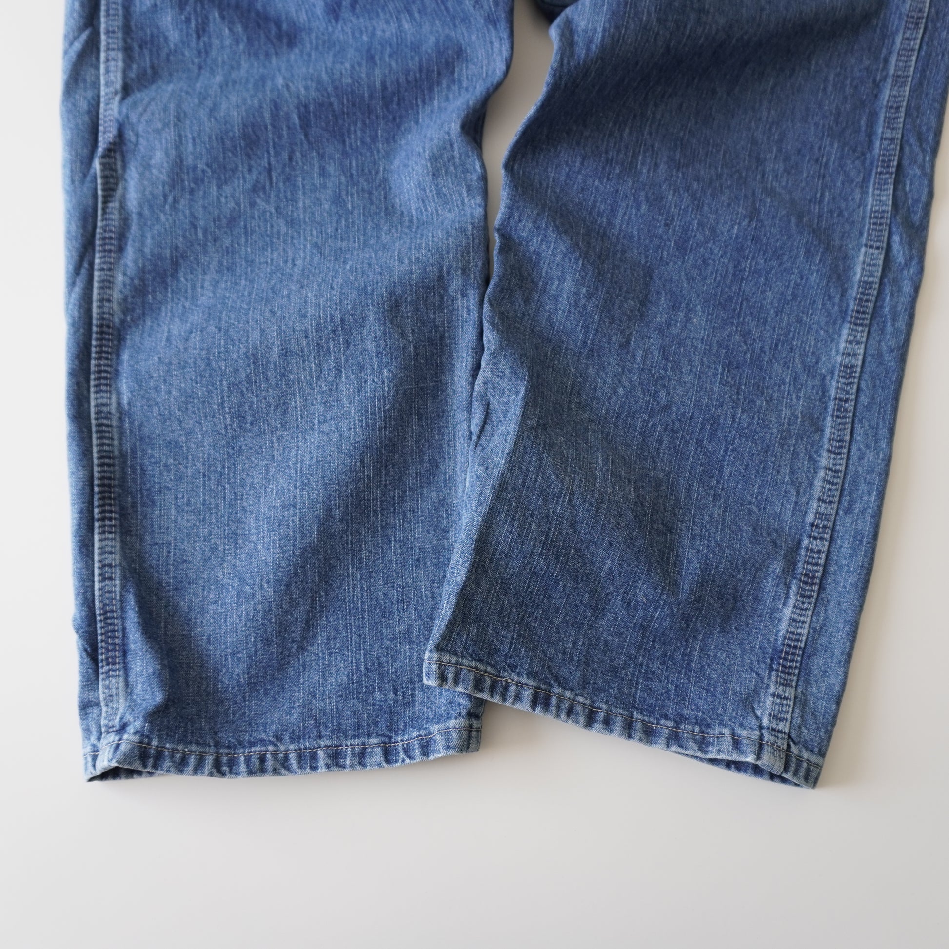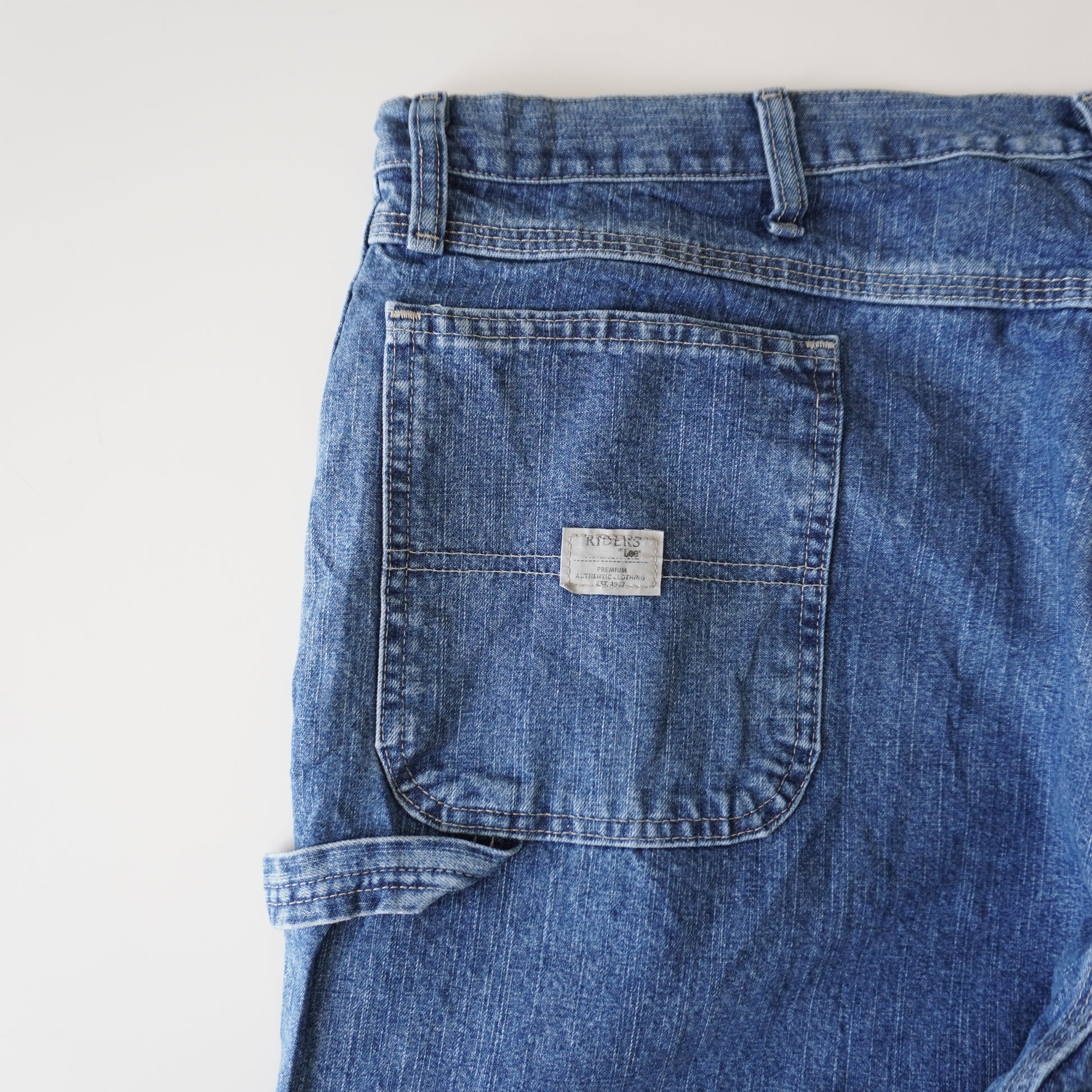 Fabricado en denim grueso de alta calidad, cuenta con bolsillos carpenter amplios, costuras reforzadas y presillas sólidas, elementos característicos de la marca Rider by Lee, reconocida por su herencia en el trabajo y el diseño resistente. Esta prenda thrifted conserva todo el carácter y la durabilidad del auténtico denim americano.