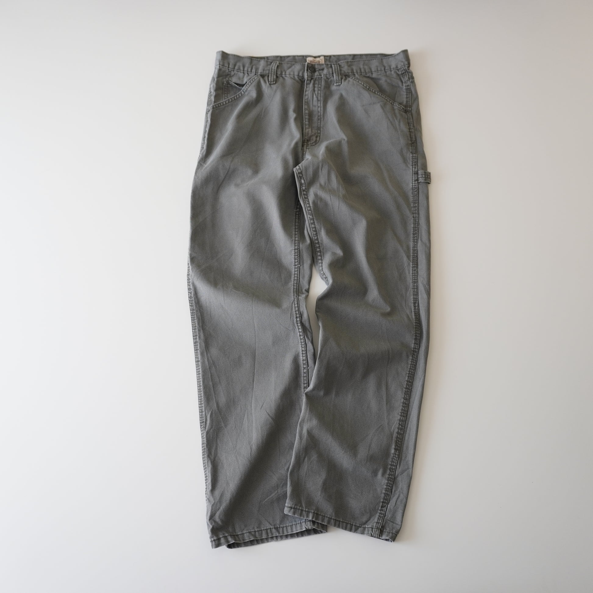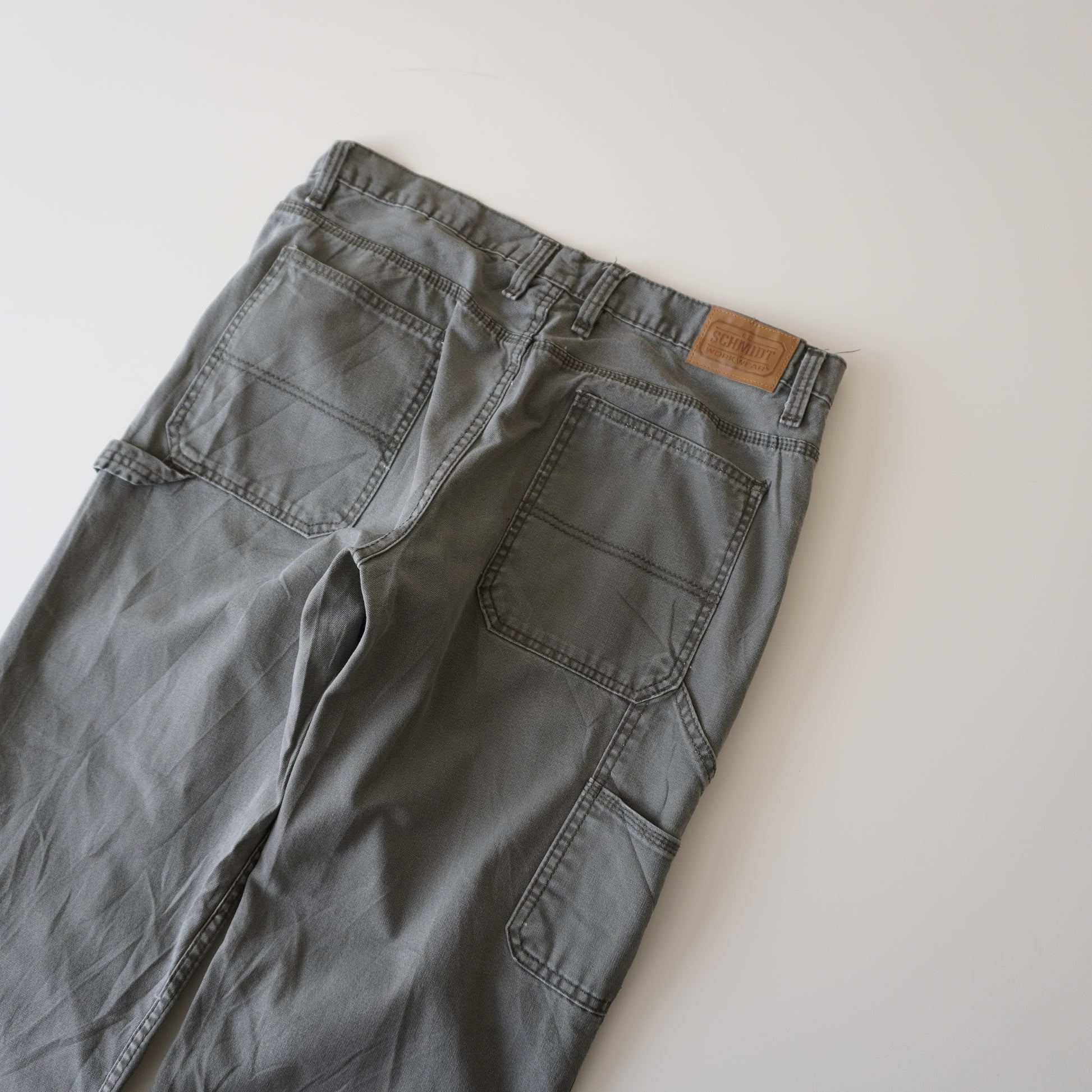 Este jean carpenter Schmidt Workwear thrifted, en color verde oliva y talla 36x34 USA (equivalente CL 46-48), representa el auténtico espíritu del workwear vintage: resistente, funcional y con carácter. Con cintura de 48 cm, largo de 110 cm y talón de 23.5 cm, ofrece un calce amplio y cómodo, ideal para un look urbano, outdoor o utilitario.
