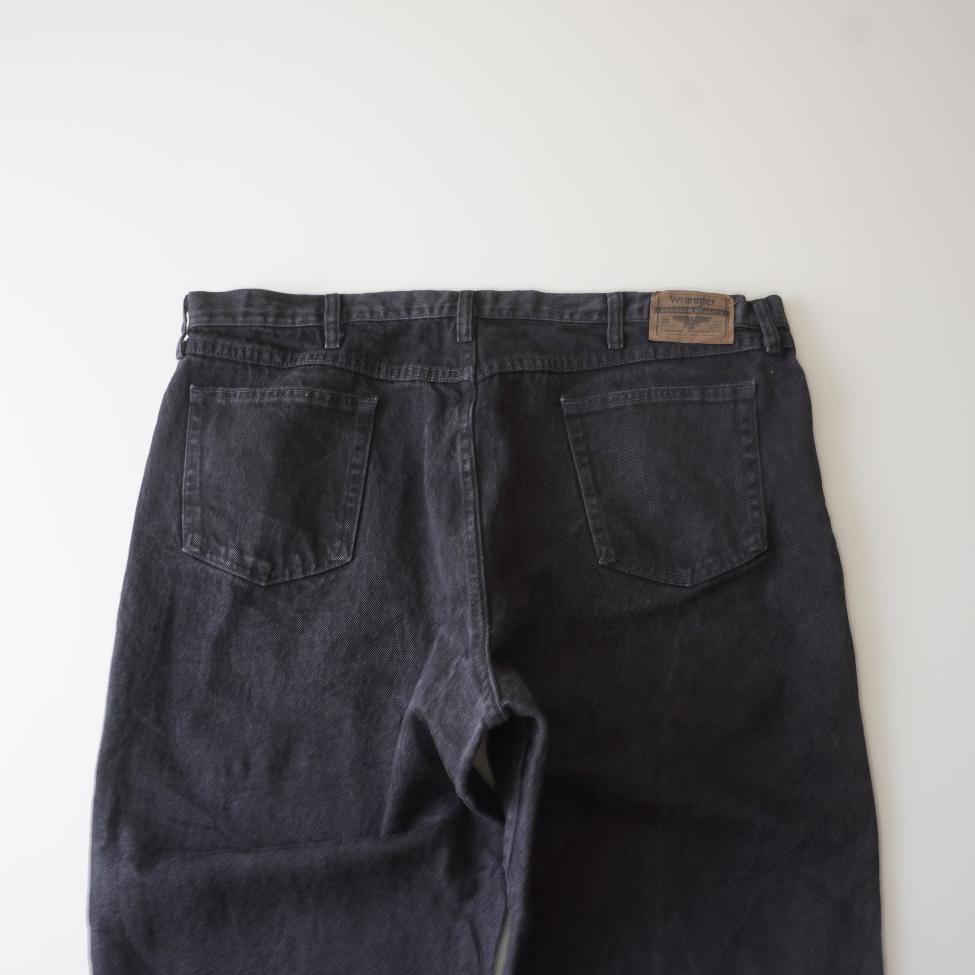 Thrifted – Jean Wrangler Negro Talla 44x30 USA (CL 56 aprox.) | Cintura 57 cm | Largo 114 cm | Talón 23 cm