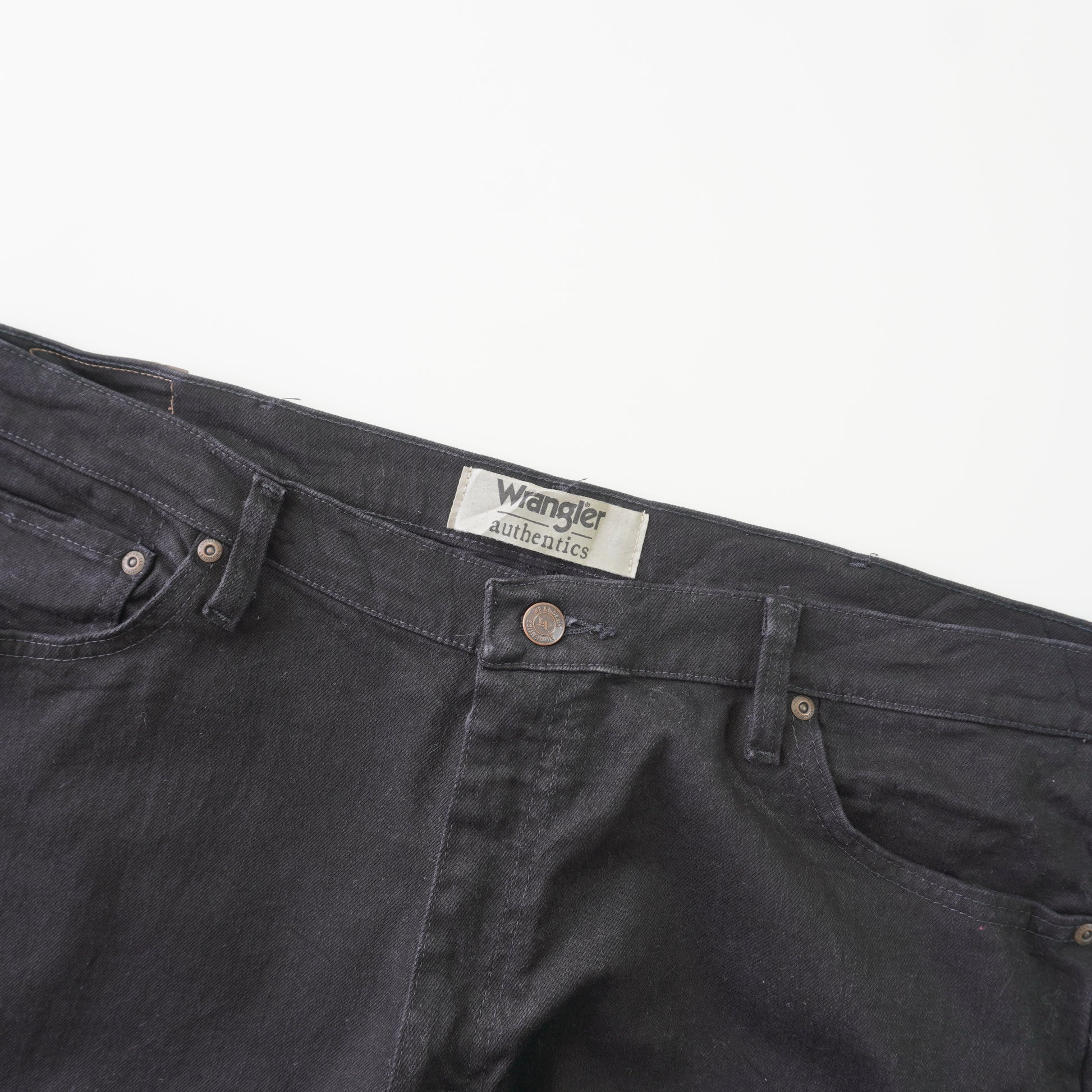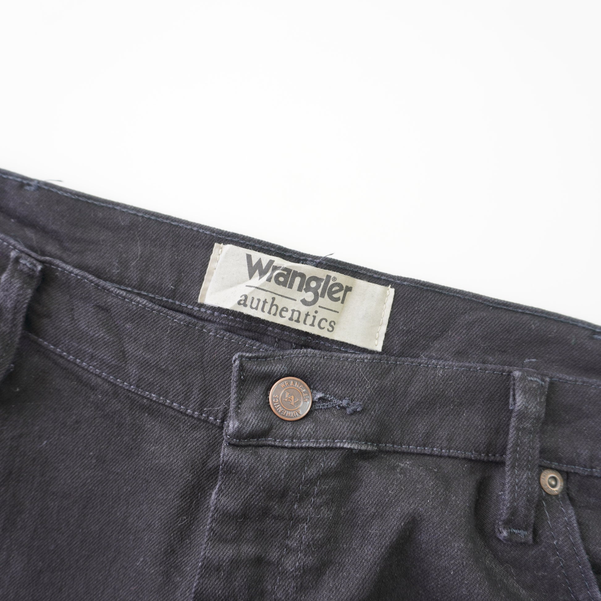 Thrifted – Jean Wrangler Negros Authentics Talla 40x29 (CL 52) | Cintura 54 cm | Largo 52 cm | Talón 23 cm