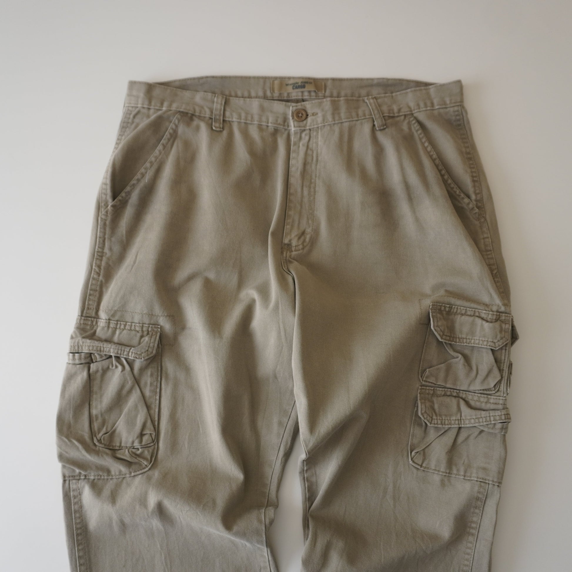 Thrifted – Pantalón Cargo Wrangler Talla 48x32 USA | Cintura 50 cm | Largo 107 cm | Talón 24 cm