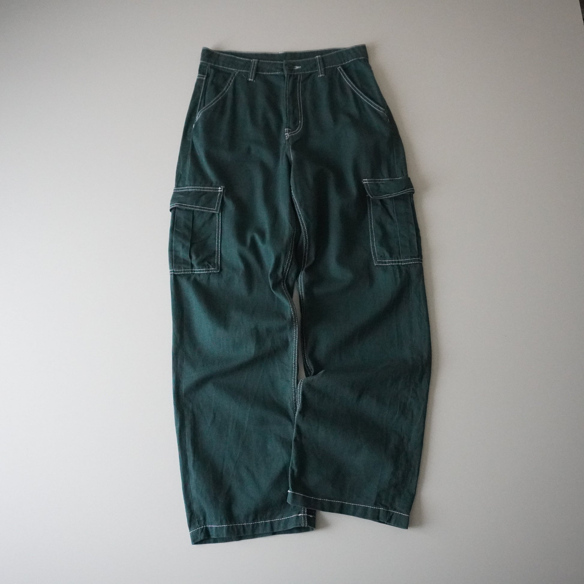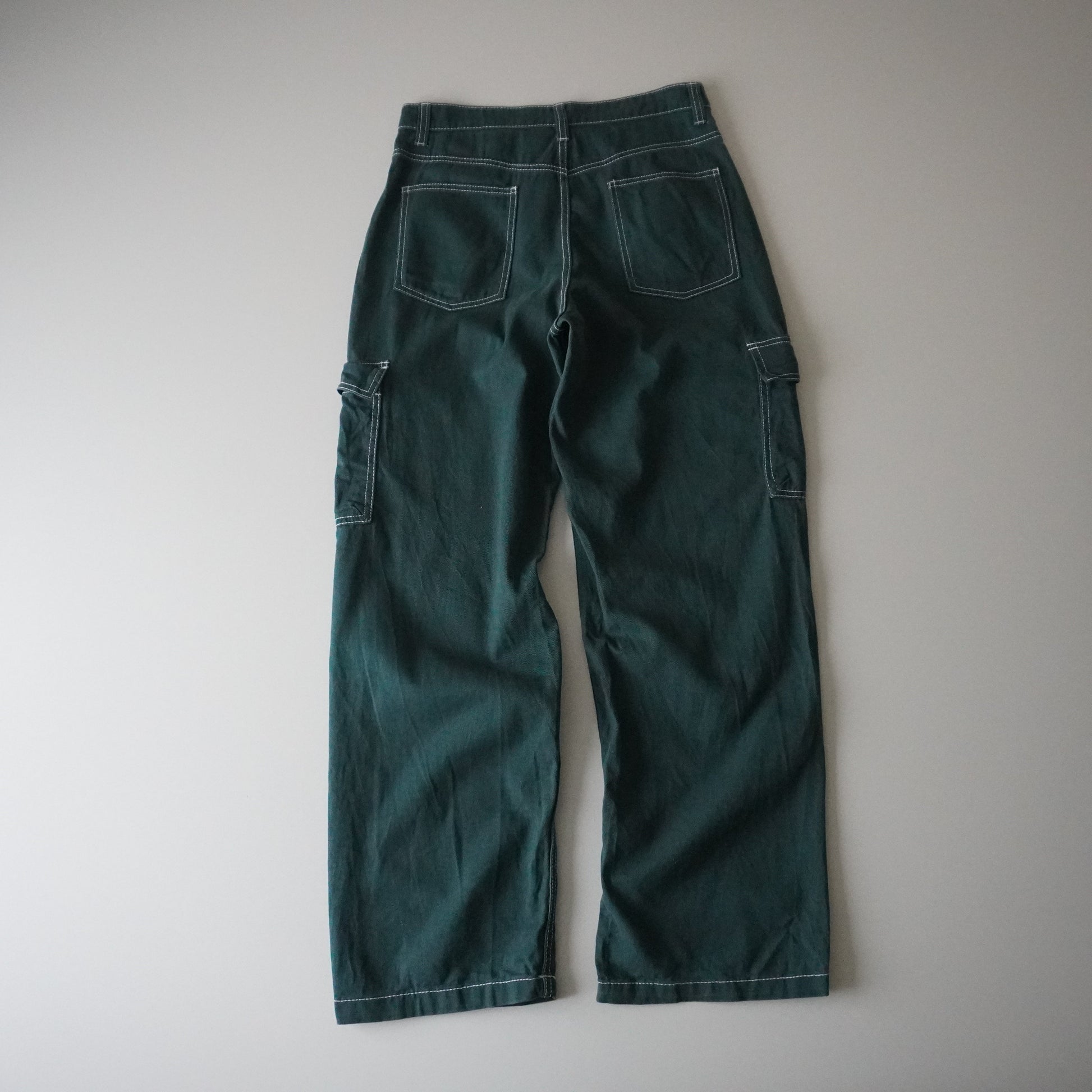 Thrifted – Pantalón Cargo Verde Costuras Blancas Talla US 6 | Cintura 40 cm | Largo 107 cm