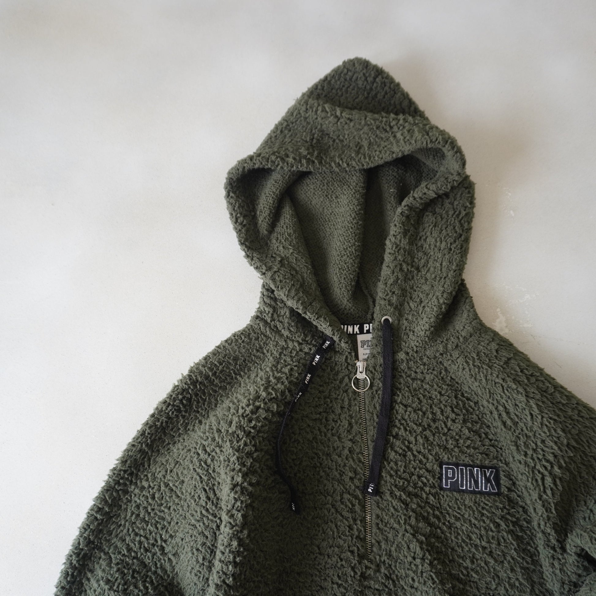 Thrifted - Polar “PINK“ Furry Verde Olivo / Talla S, 55 ancho, 65 largo