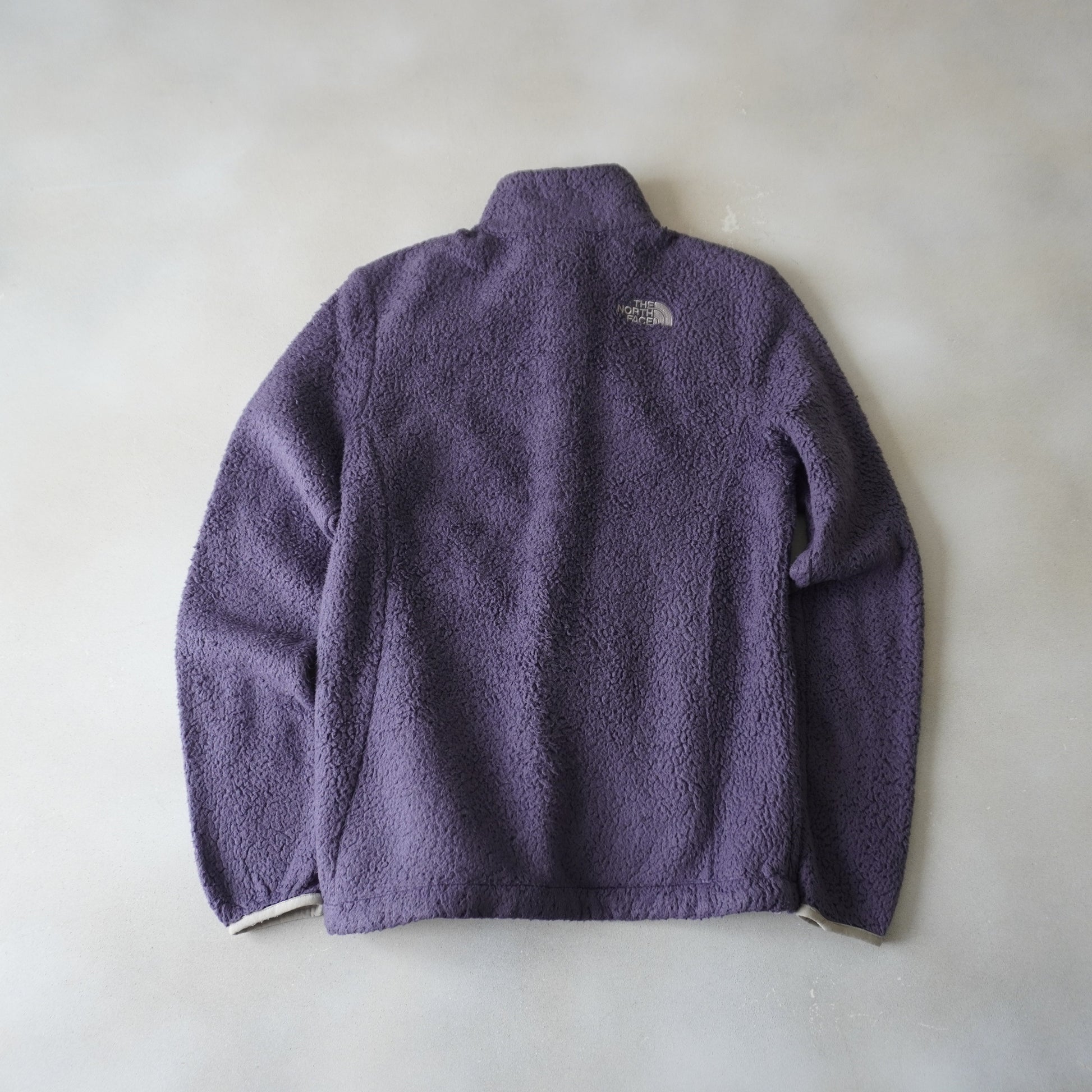 Thrifted - Polar THE NORTH FACE Furry Morado / Talla S Mujer, 46 ancho, 61 largo.