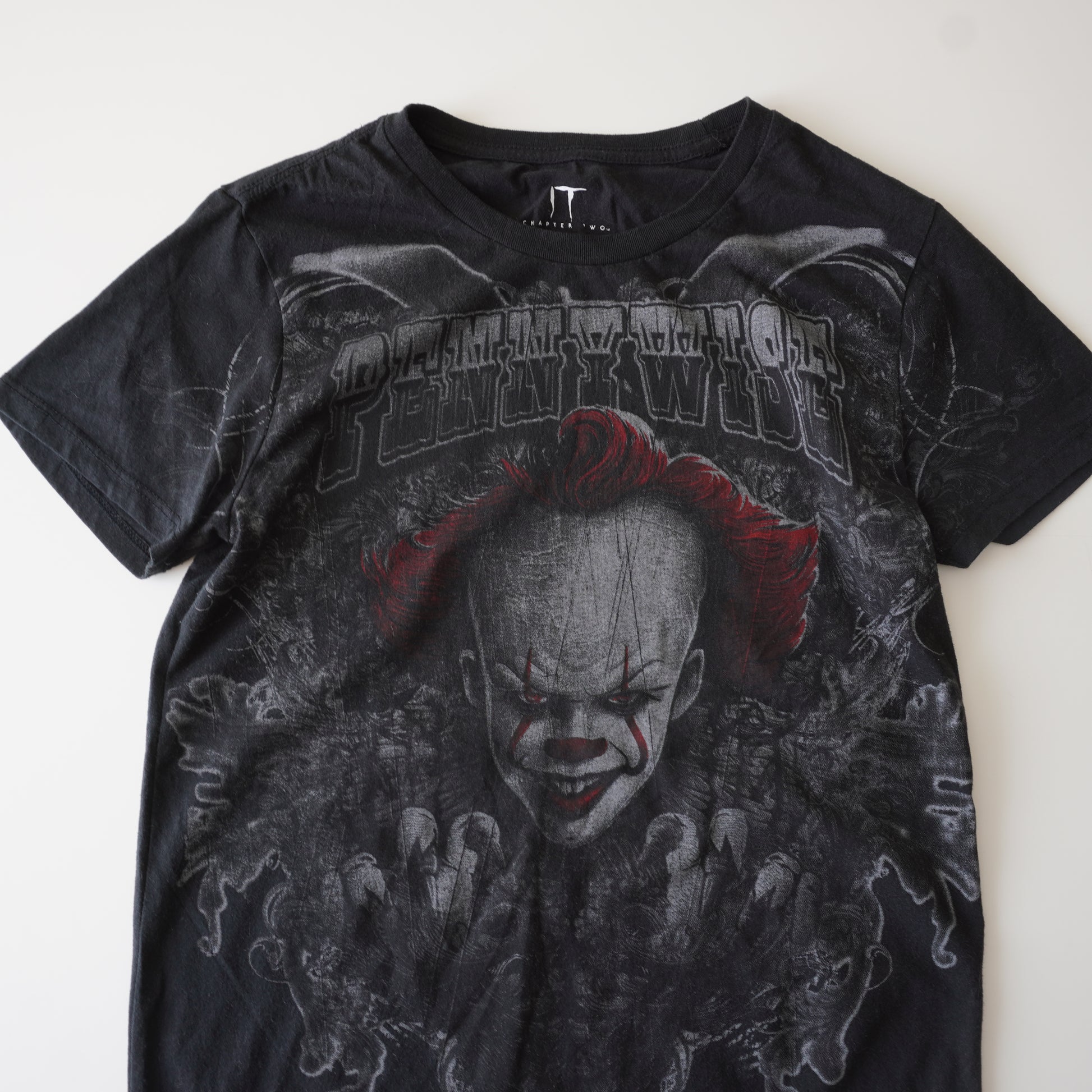 Esta polera IT Movie thrifted, en talla S, es una pieza ideal para los fanáticos del cine de terror y la estética vintage. Con largo de 66 cm y ancho de 43 cm, ofrece un calce ajustado y cómodo, perfecta para un look retro, alternativo o inspirado en películas clásicas.
