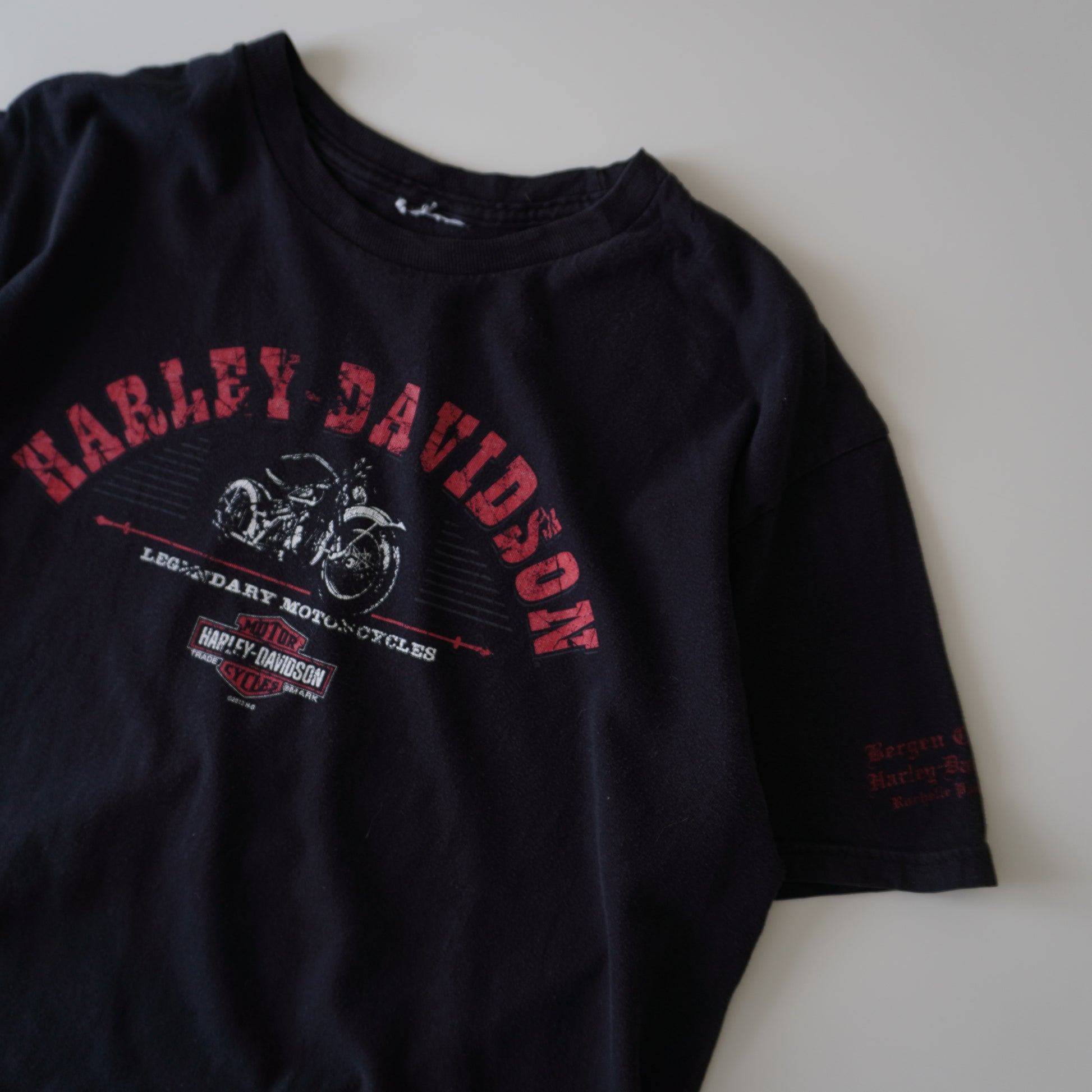 Thrifted – Polera Harley-Davidson 2013 Negra con Letras Rojas | Largo 69 cm | Ancho 58 cm