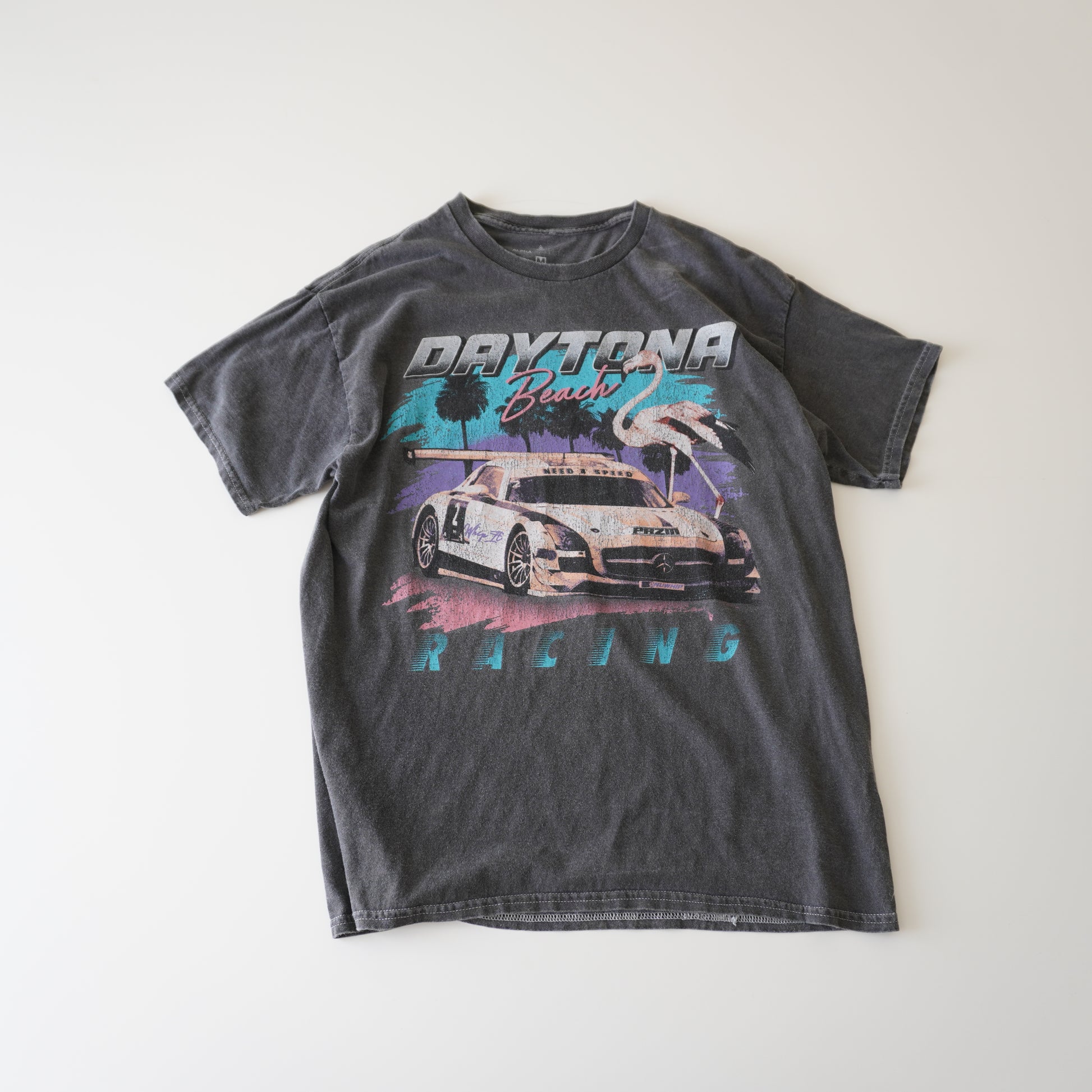 Thrifted – Polera Washed Daytona Racing Gris Vintage Talla M (CL 38–40) | Largo 71 cm | Ancho 54 cm